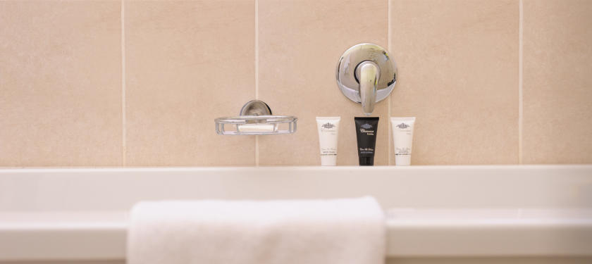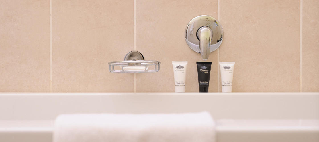 The Gorge Suite includes an en-suite bathroom with both large bath and walk-in shower, a
